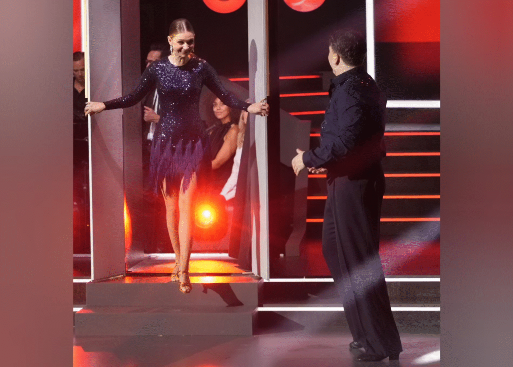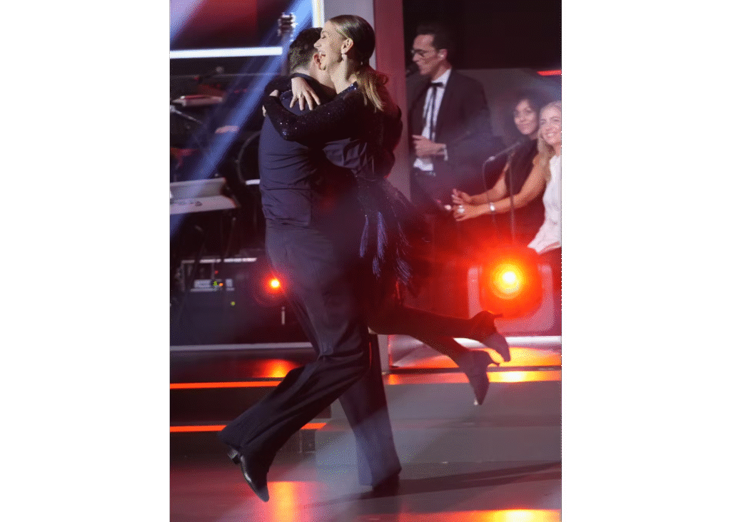 Han farede nemlig rundt på dansegulvet sammen med sin dansepartner, Camilla Dalsgard, da hans forlovede sprang frem fra den hemmelige dør.