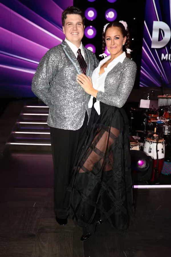 Alfred Midé Erichsen har opbakning i studiet af sine stolte forældre Mikkel Beha Erichsen og Marian Midé Erichsen til program 8 af ”Vild med dans”.