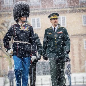 I den kolde novemberkulde overværede Hans Majestæt Kongen tidligere i dag Den Kongelige Livgardes Urparade på Livgardens Kaserne ved Rosenborg Slot.