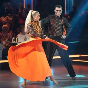 Karina Frimodt skilte sig ud, da hun sammen med Gustav dansede en paso doble i “Vild med dans”. Inden fredagens omdans var Gustav Salinas den eneste af…