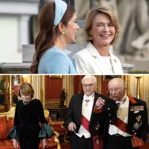 Elke Büdenbender med dronning Mary under kongeparrets tiltrædelsesbesøg i Tyskland i 2024.Tysklands førstefrue var sammen med sin mand præsident Frank-Walter Steinmeier til statsbanket på Windsor Castle onsdag…