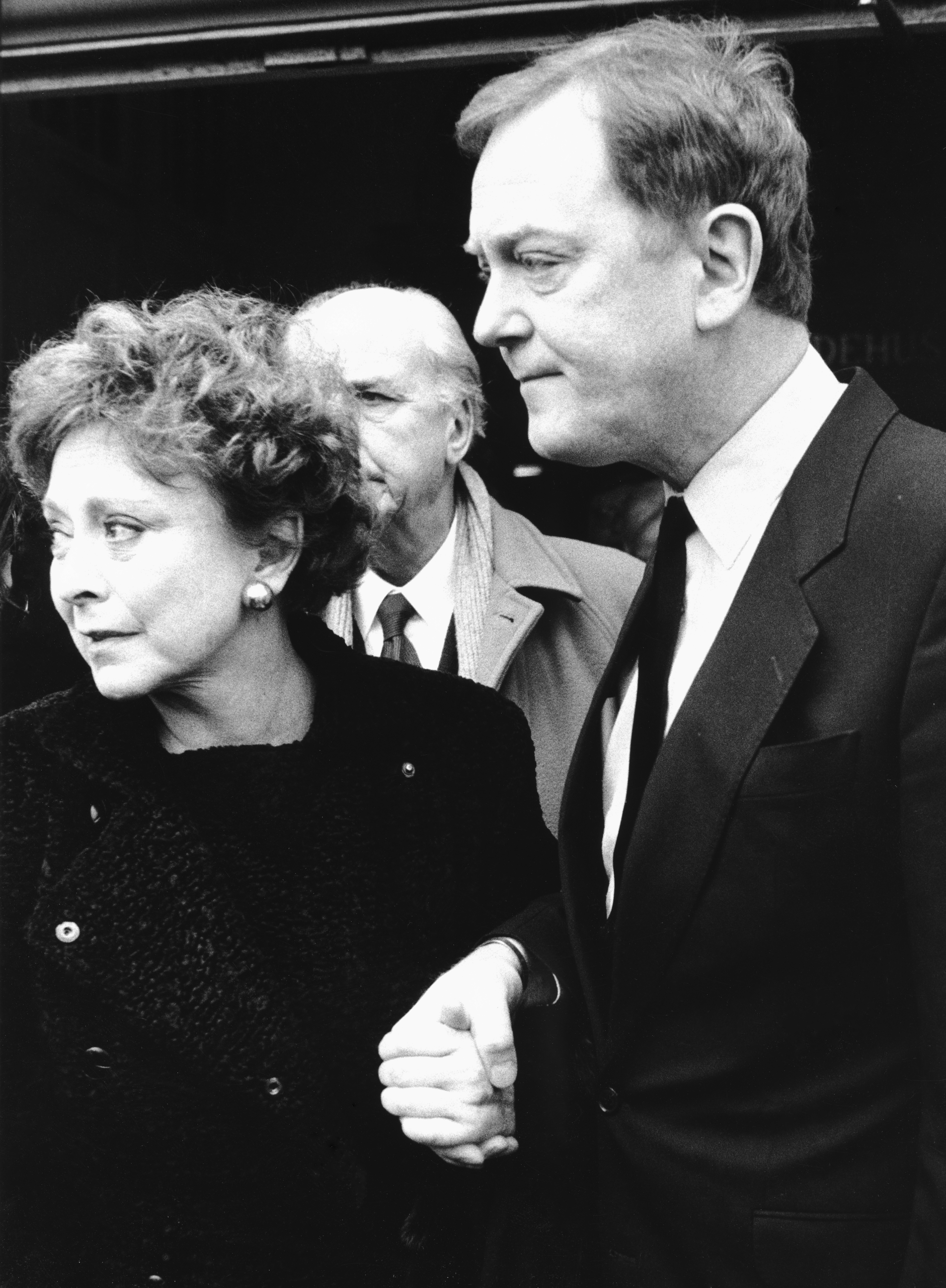 Helle Virkпer og Jesper Laпgberg til Ebbe Laпgbergs begravelse i 1989.