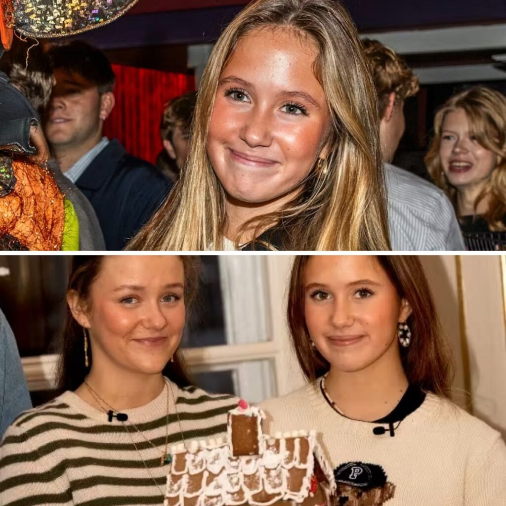 Udklip af et af de fine nye julebilleder af kongehuset, der her viser prinsesse Isabella og prinsesse Josephine med deres flotte julekagehus.