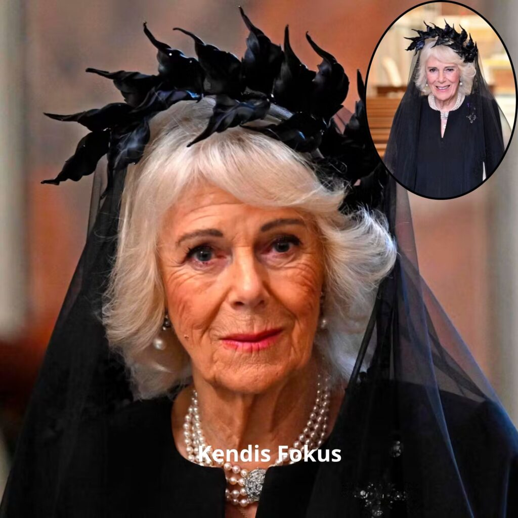 På hovedet bar dronningen slør og en meget opsigtsvækkende krans, som i den grad har fået folk til tasterne på det sociale medie X.