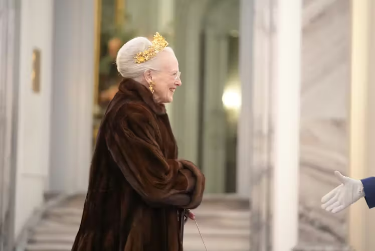 Som en af de sidste gæster ankommer dronning Margrethe lidt før klokken otte foran Christian VII’s palæ.