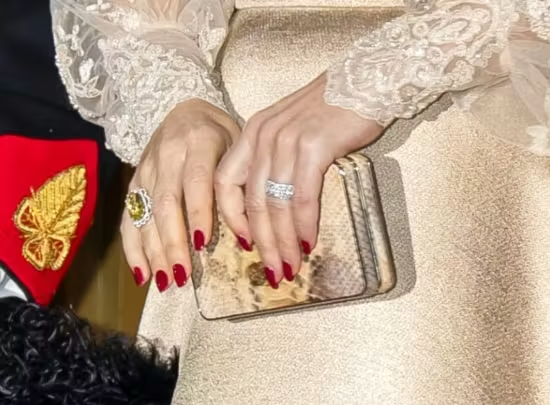En opsigtsvækkende detalje, som man kan nærstudere på de flotte billeder af dronningen fra den traditionsrige aften, er, at hun til sit nytårslook havde valgt en cool og moderne clutch, der hører til hendes absolutte favoritter – en gylden clutch med slangeskindsprint og swarovski krystaller, der, ifølge Ufo no more, er fra Judith Leiber.