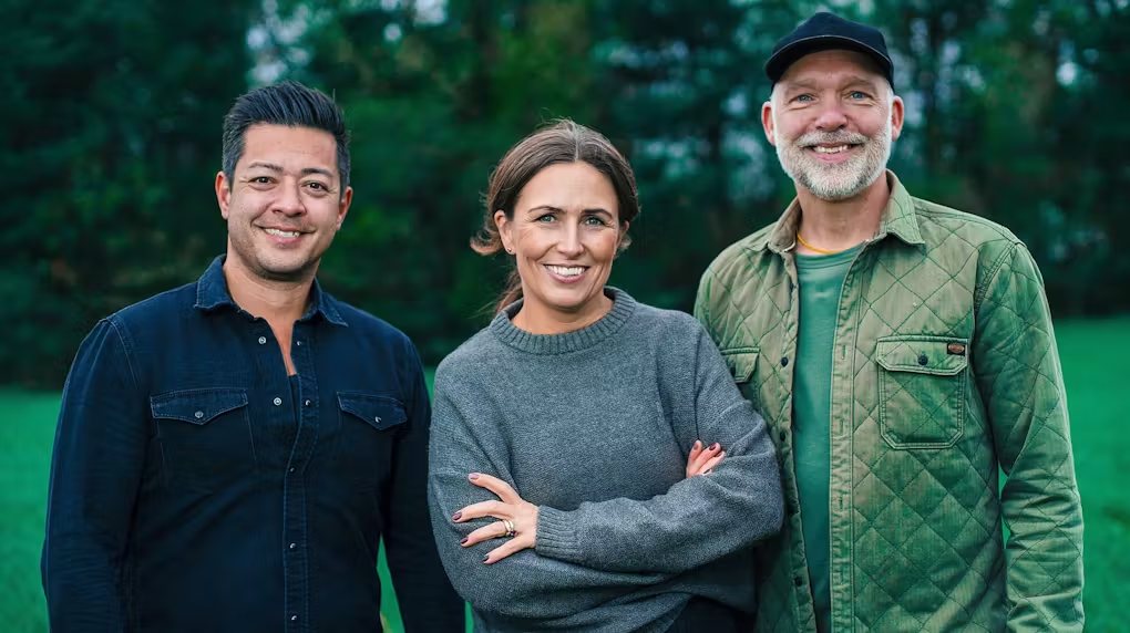 Dennis Lindequist, Line Franck og Kalle Thesbjerg deler en dejlig nyhed om ”I hus til halsen”.