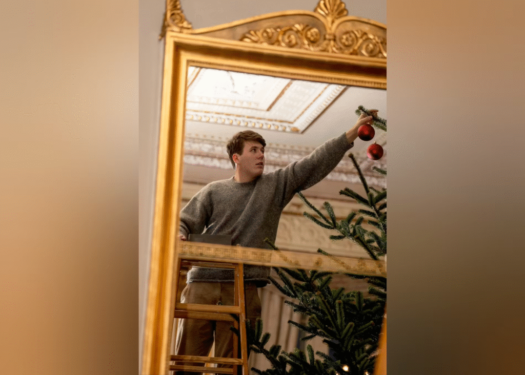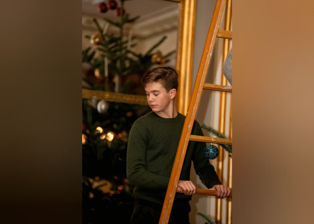 I mellemtiden kravlede både kronprins Christian og prins Vincent rundt på en stige, så de kunne få pyntet toppen af træet.