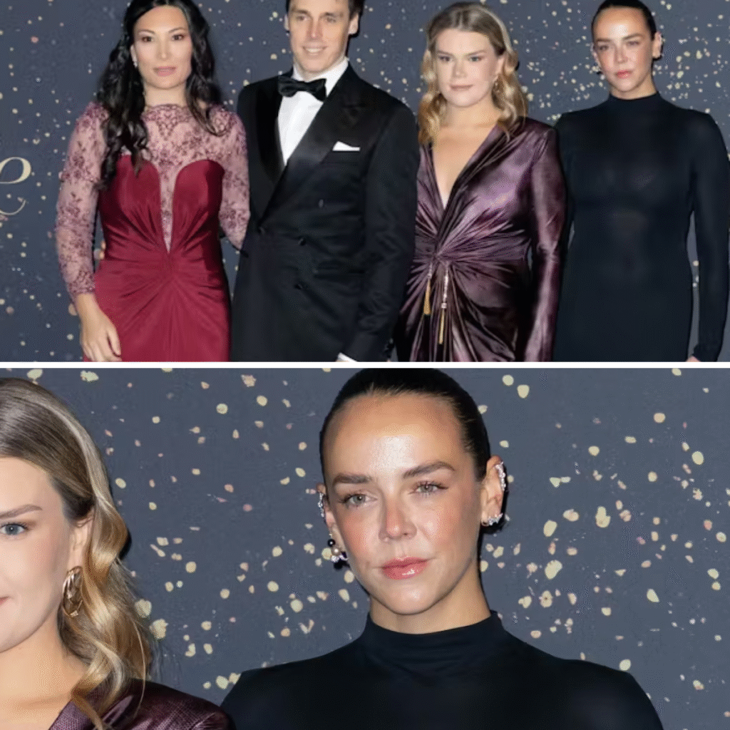 Louis Ducruet og hans hustru Marie, Pauline Ducruet og Camille Gottlieb stillede alle op til foto, og her bemærker tyske Gala, at fotografernes blitzlys havde en særlig effekt på 31-årige Pauline Ducruets sorte kjole.