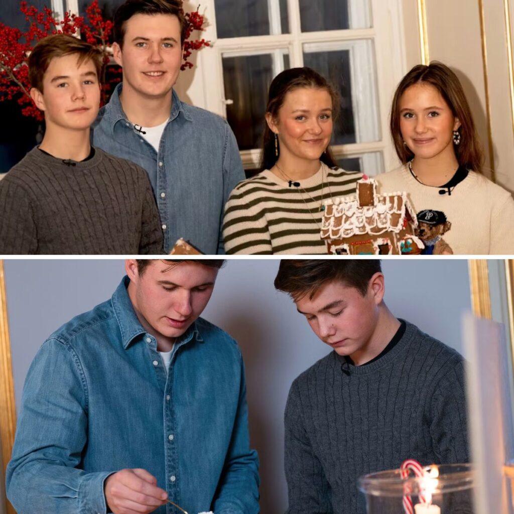 Det ses i den nye video med medfølgende billeder, som kongehuset onsdag har delt på deres sociale medier og på hjemmesiden, der viser kronprins Christian, 20, prinsesse Isabella, 18, prins Vincent og prinsesse Josephine, 14, i weekenden udfordre hinanden i at bygge det flotteste julekagehus hjemme i Frederik VIII’s Palæ på Amalienborg.