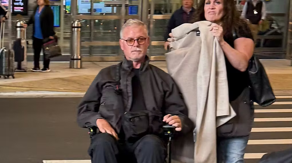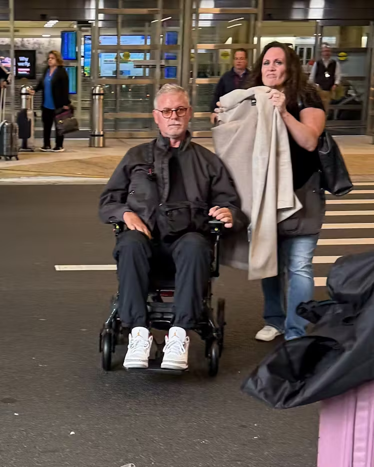 Ifølge News.com.au blev de nye billeder af den 52-årige skuespiller taget forleden, da han skulle gennem lufthavnen i Toronto.