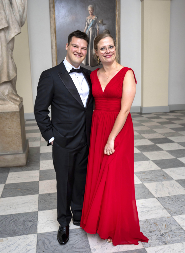 Emma Lund og hendes kæreste, Anes Jasarevic, blev forældre for en måned siden. Her ses de i februar til kunstnerballet hos kongeparret.