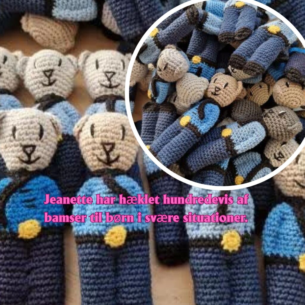 Jeanette Byskov Nielsen arbejder selv i den administrative afdeling ved Midt- og Vestjyllands Politi, og det var her, hun selv først hørte om bamselommevenner. Men det var ikke det, der kickstartede hendes hæklekarriere.