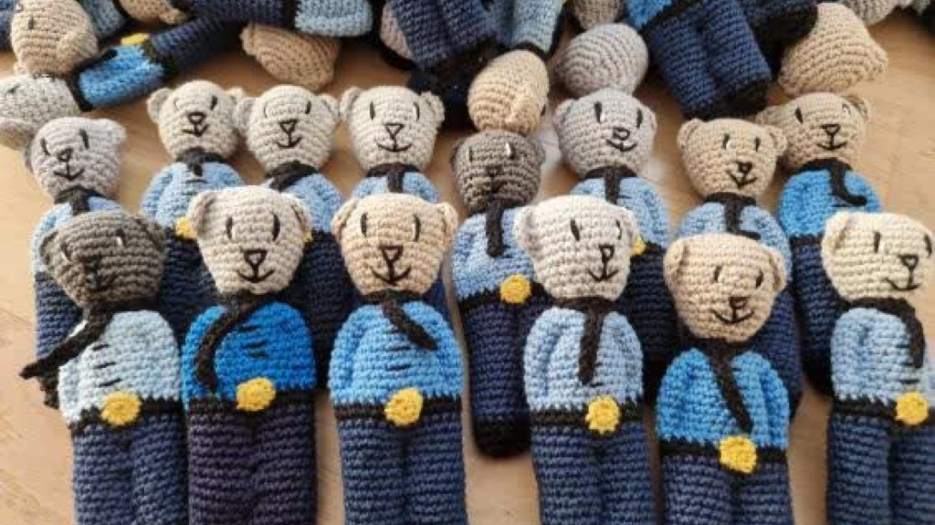 Hvis du sidder derude og har fået lyst til at hækle en bamselommeven til politiet, så kan du finde opskrifterne inde på politiets hjemmeside.