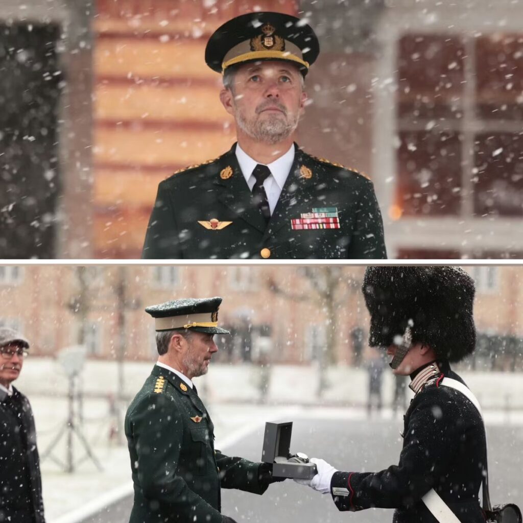 Midt i det sneklædte landskab stod garderne klar med deres flotte uniformer og bjørneskindshuer – og her ventede de i spænding på, at kong Frederik skulle troppe op.