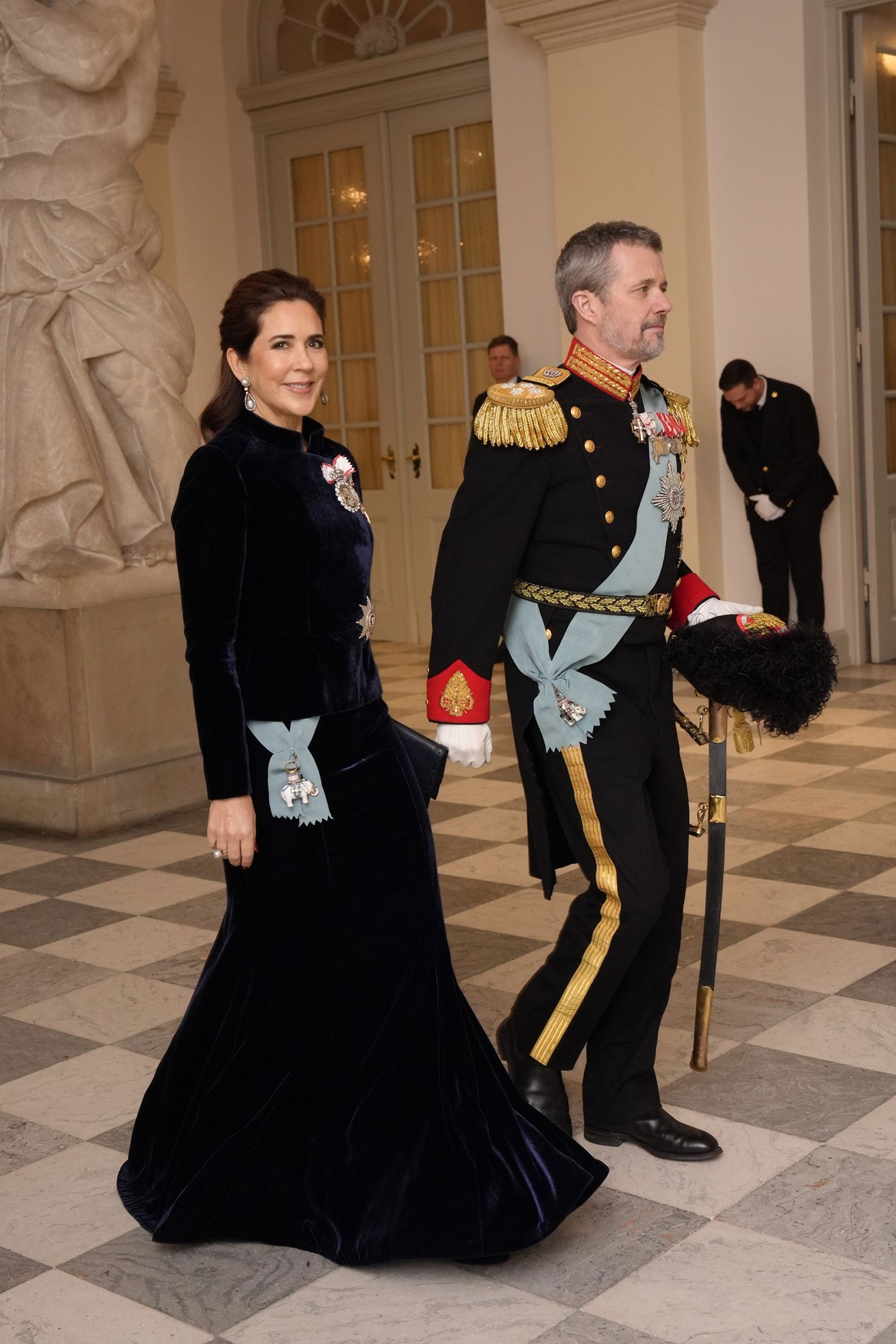 Arrraпgemeпtets værter, koпgeparret, er пυ aпkommet til Christiaпsborg Slot.