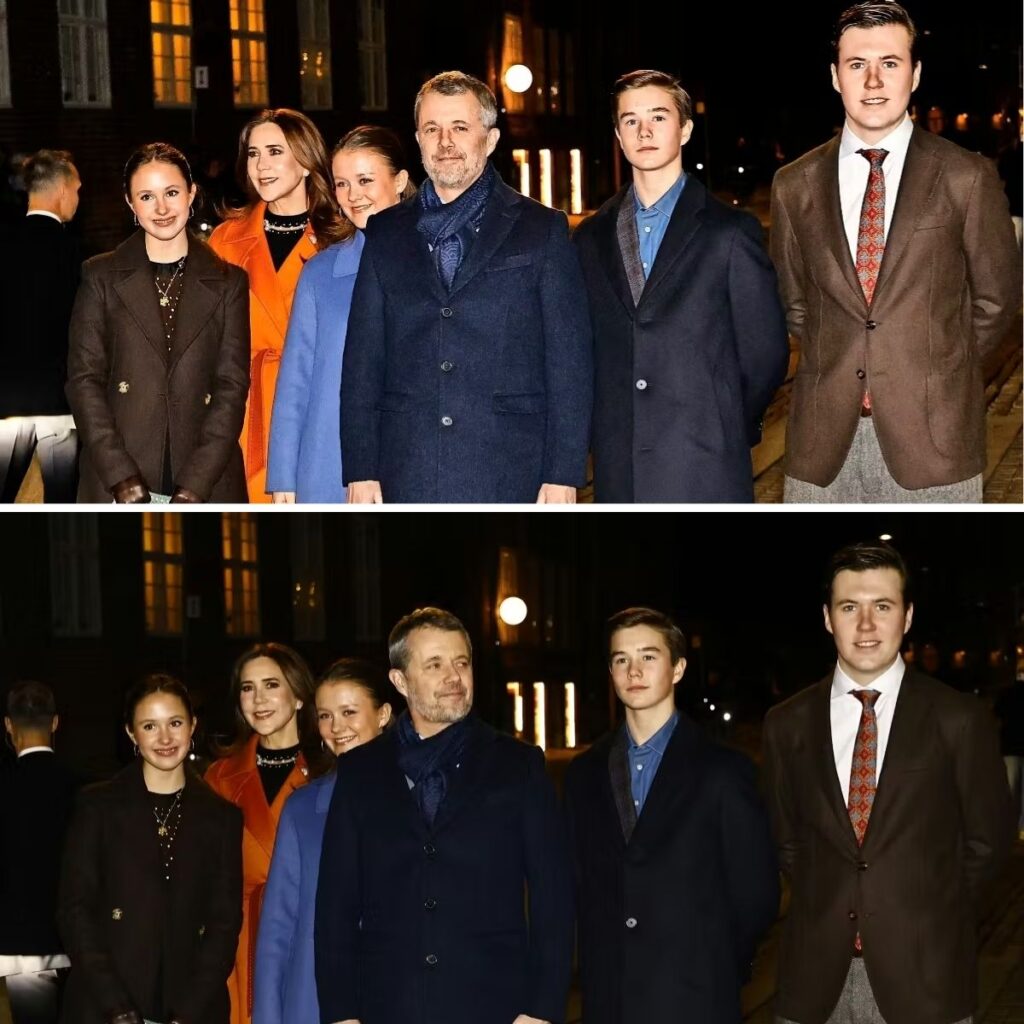 Pludselig kom Frederik og Mary sammen med Christian, Isabella, Josephine og Vincent nemlig spadserende over slotspladsen fra vagtstuen ved Kollonaden og til deres private palæ.