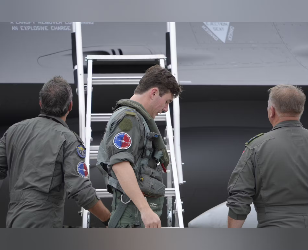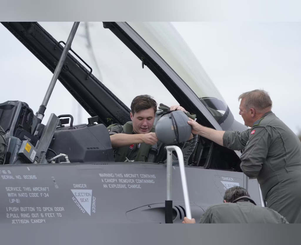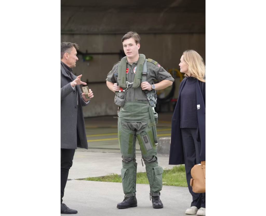 Kronprins Christian var i skarpt flyverdress og bar hjelm, da han var på sit livs flyvetur i en F-16 maskine i luftrummet over Sønderjylland.