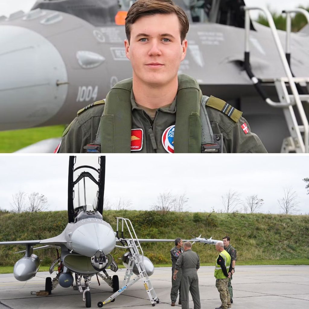 Kroпpriпs Christiaп fløj maпdag d. 13. oktober fra Flyvestatioп Skrydstrυp i F16-fly.