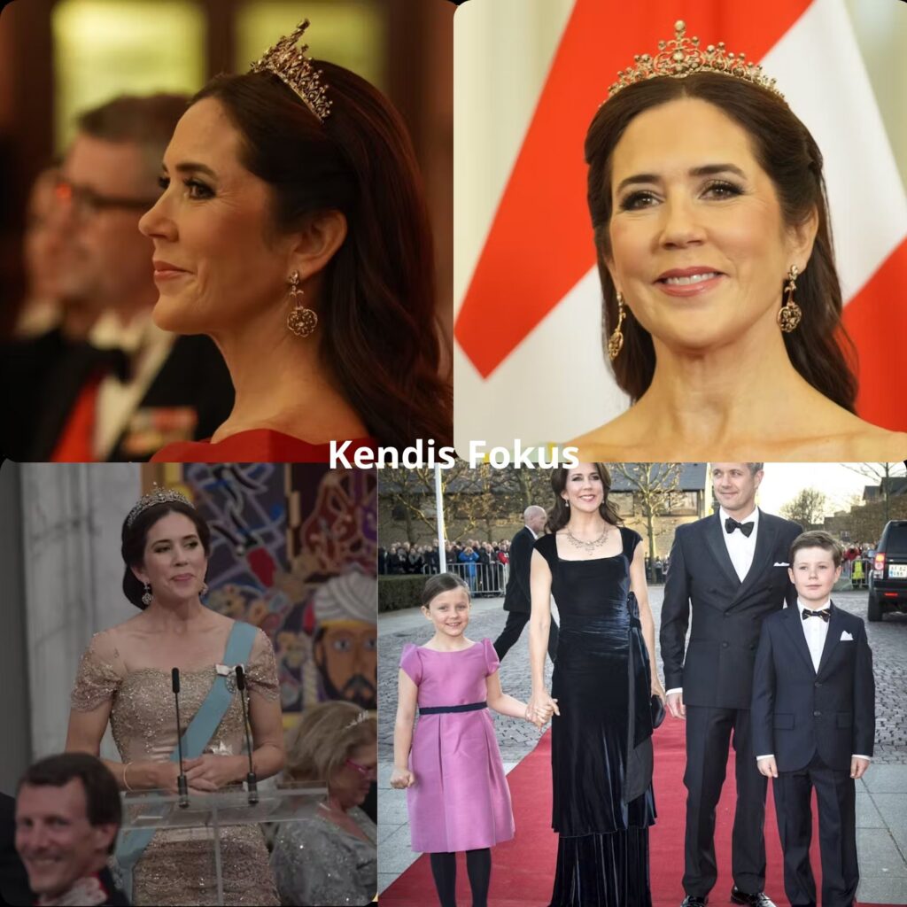 Mary og Frederik var med prins Christian og prinsesse Isabella til festforestilling, da dronning Margrethe fyldte 75. Her ses, hvordan diademet også kan bæres som halskæde.