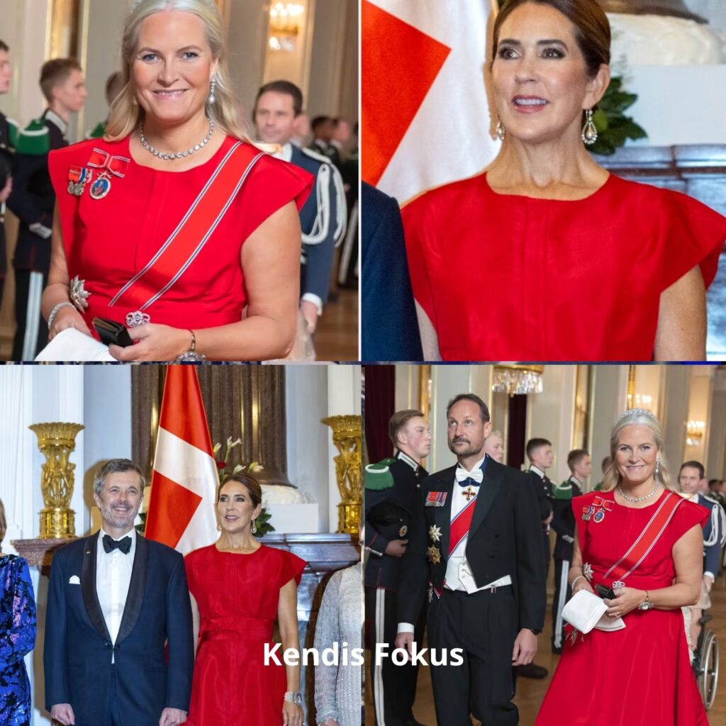 Kronprinsesse Mette-Marit og kronprins Haakon var også med til middagen, og mon ikke Mette-Marit har beundret Marys kjole i sådan en grad, at hun også måtte have sit eget eksemplar?