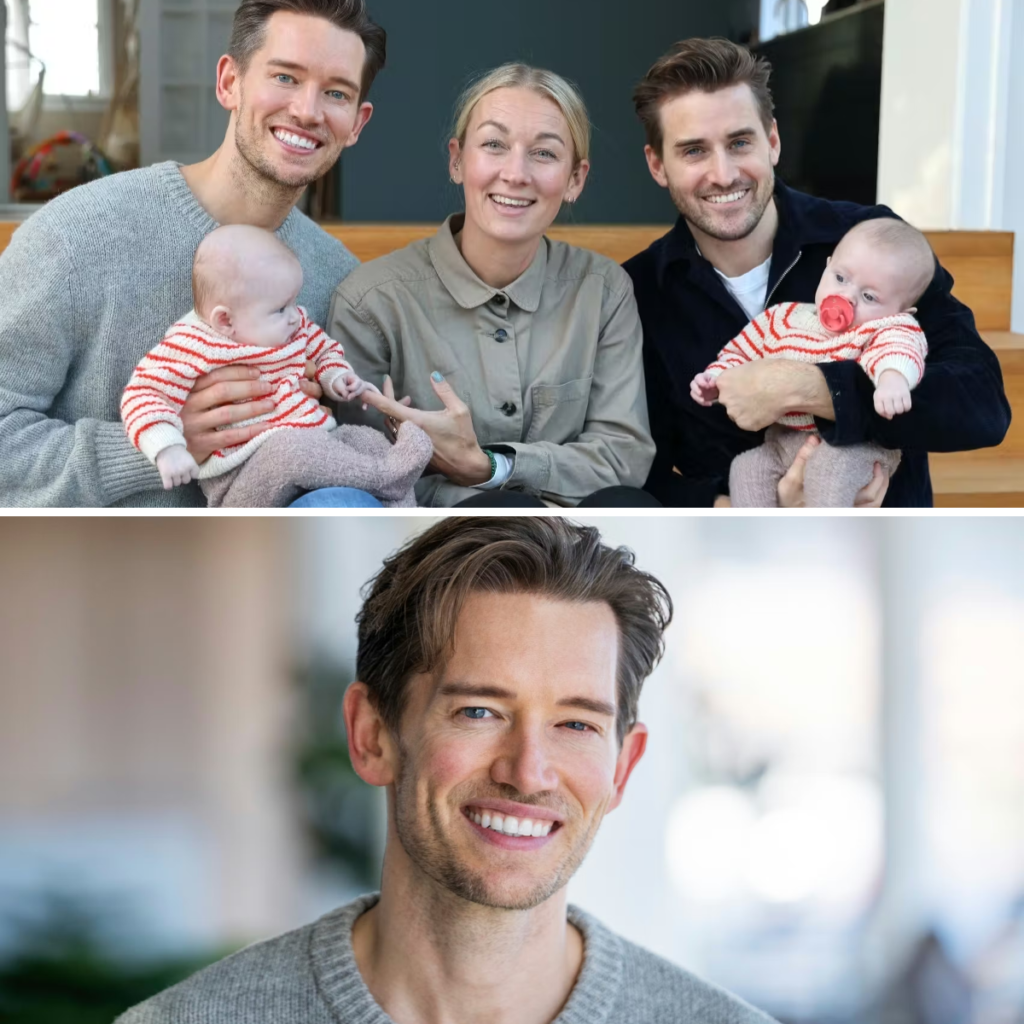 Her er de lykkelige fædre, Morten med Emma på armen og Frederik med Nora.
