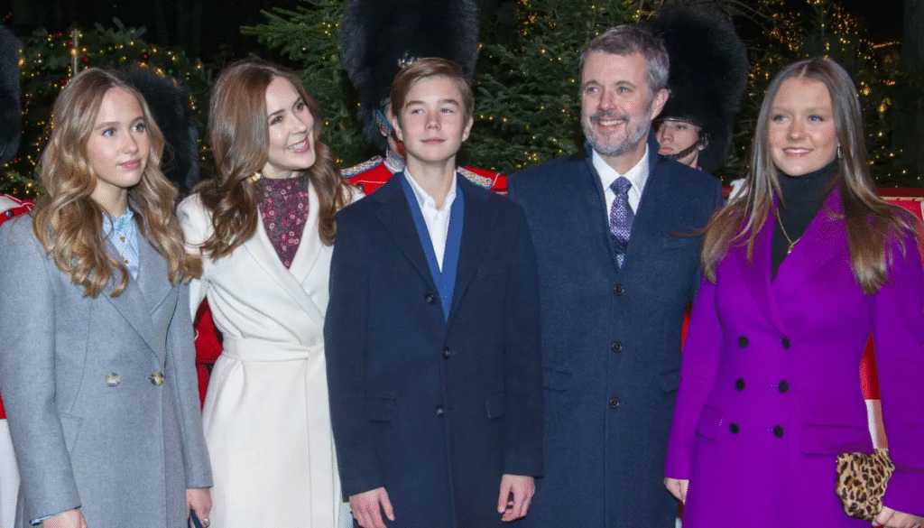 Frederik og Mary ses her ankomme til repremieren på juleballetten Nøddeknækkeren i november 2024 sammen med Isabella, Josephine og Vincent.