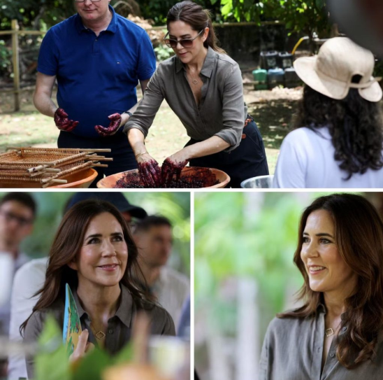 Tirsdag besøgte dronning Mary en kakaoproduktion i Brasilien.