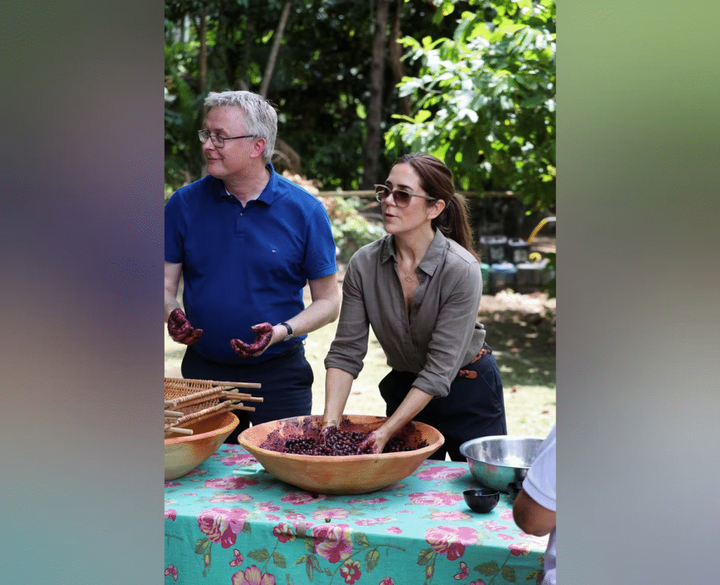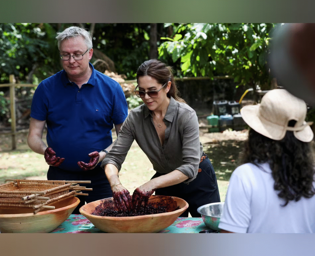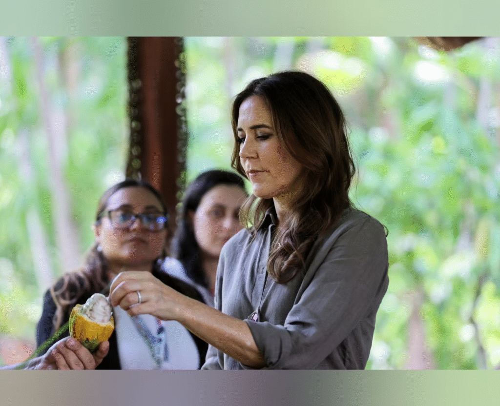 Tirsdag besøgte dronning Mary en kakaoproduktion i Brasilien.