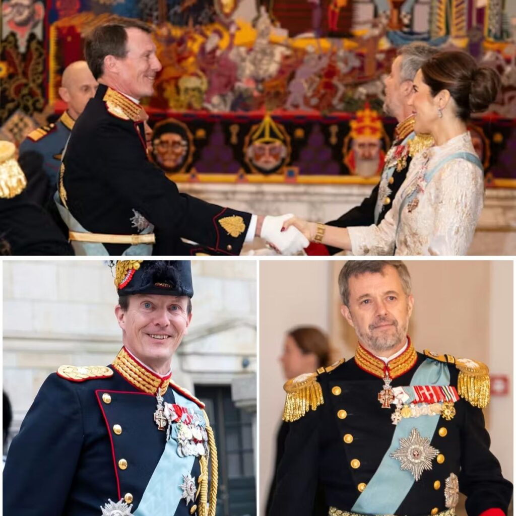 Vi plejer at se både kram og kindkys, når prins Joachim genforenes med sin storebror og svigerinde. Men det var der umiddelbart ingenting af tirsdag formiddag.