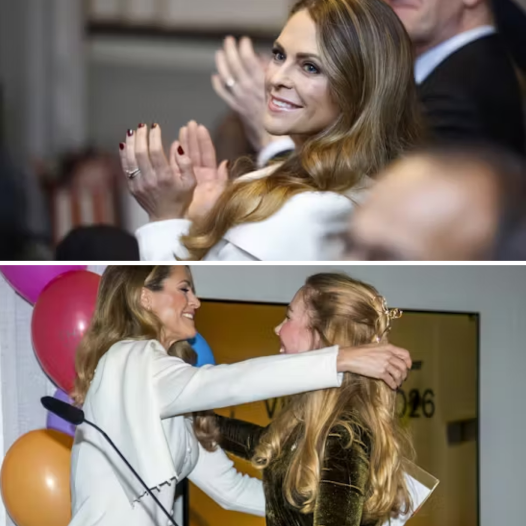 Prinsesse Madeleine kvitterede også med et stort kongeligt kram.