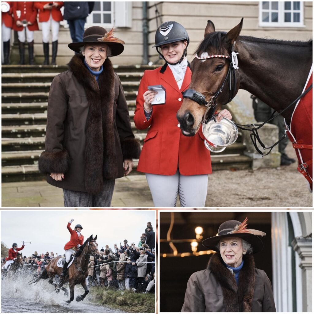 Ved Eremitageslottet, der ligger i Dyrehaven på Eremitageslettens højeste punkt, uddelte Prinsesse Benedikte efter Hubertusjagten ”H.M. Dronning Marys Ærespræmie”.