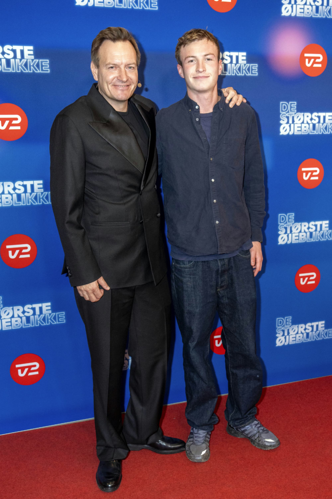 Han stillede op til et billede med sønnen Emil på den røde løber inden showet.